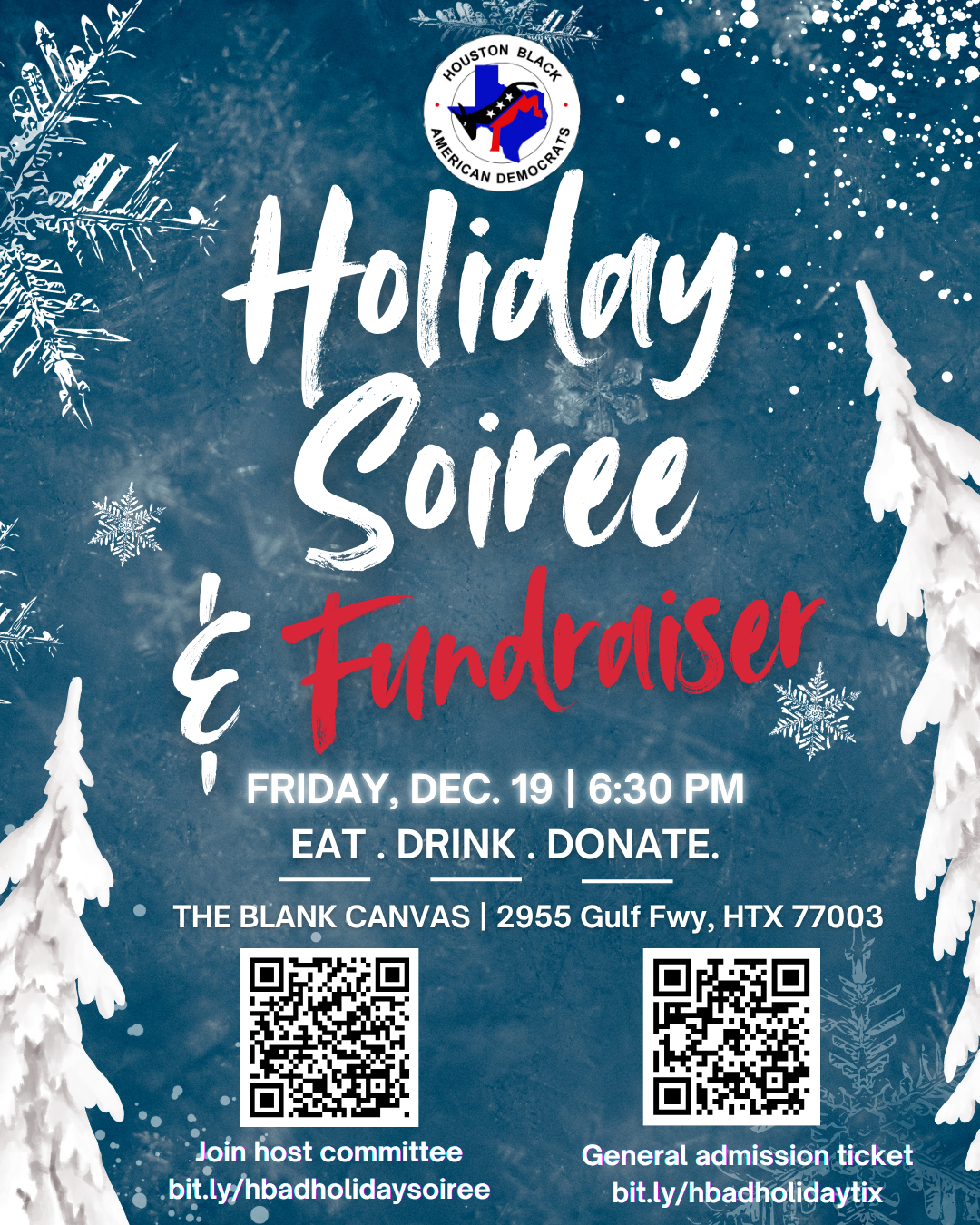 Join the Houston Black American Democrats for our Holiday Soiree & Fundraiser — an evening of joy, connection, and community impact.